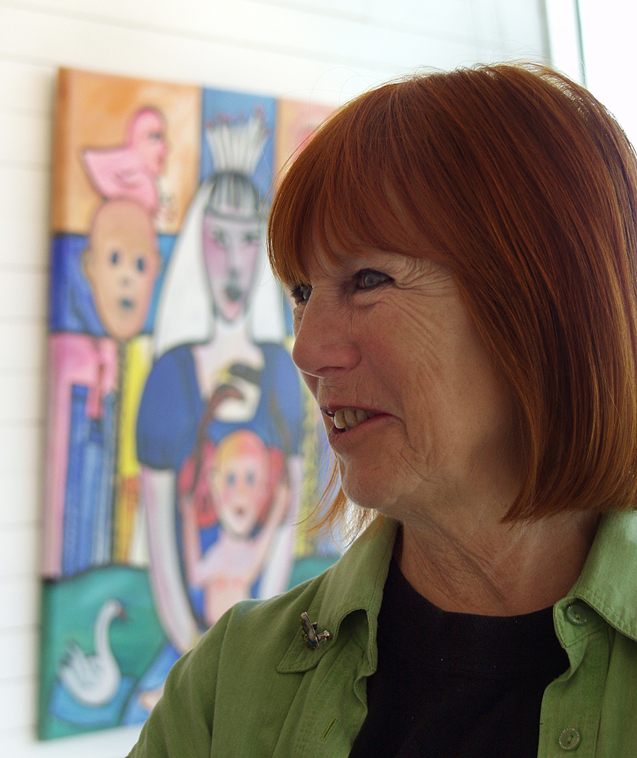34 verk, merparten nymålade akryl gjorda för utställningen, kommer att visas fram till och med den 22 juli. Vernissagen är i morgon med invigning kl 13.00 då P-O Bodin tänker intervjua konstnärinnan.