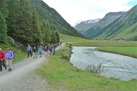 En kväll tillbringas traditionellt i familjen Altenbergs fäbod, som ligger en bit in i Stubacher Tal. Kreaturen tillbringar vintermånaderna i fäboden för att under sommarmånaderna förpassas till omgivande alpängarna. Fäboden städas då upp och här blir det då hög stämning med grillfest. sång- och musikunderhållning med familjen Altenberger. Ett mycket uppskattat inslag.