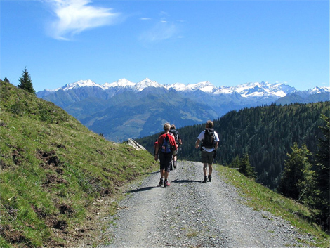 Dagsvandringar med skiftande svårighetsgrad erbjuds. Bussen finns tillgänglig hela veckan för nya utflyktsmål varje dag. Med kabinbana tar man sig upp till lämpliga vandringsleder på ca 2000 meters höjd omgivna av majestätiska alptoppar på ca 3000 meter.