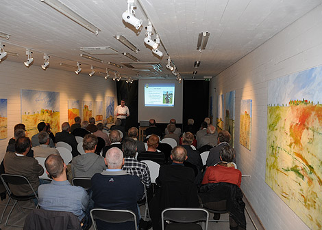 Fotboll är kultur. Omgiven av Anders Palmérs tavlor, nej inte fotbollstränaren, höll fotbollsdomaren Daniel Stålhammar på tisdagskvällen ett mycket uppskattat föredrag på Pumphusets konsthall.