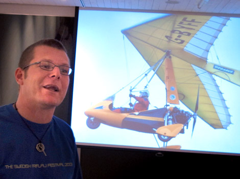 Vidare berättade han om allt från hans jobb på sjön till att han och en vän genomförde ett experiment genom att tillverka en fallskärm som ritats av Leonardo da Vinci hundratals år innan någon ens kunnat drömma om att flyga. Han berättade även om sina uppdrag för militären samt om den dag då miljardären Sir Richard Branson erbjöd honom och hans kamrat en miljon engelska pund för att slå världsrekord genom att flyga jorden runt med världens minsta flygplan.