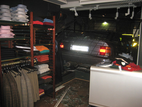 Klädesbutiken Herrcenter utsattes för ett spektakulärt inbrott natten m mot tisdagen. Två manspersoner stal först en bil i västra Landskrona. Därefter körde de ner i centrum och in på Nygatan. Väl där backade de bilen in genom ett av butikens fönster. Därefter rusade de i n och stal några plagg innan de försvann springandes upp mot Järnvägsgatans gågata. Väktare var på plats ett par minuter efter att larmet gått men lyckades trots detta inte få tag på tjuvarna.
