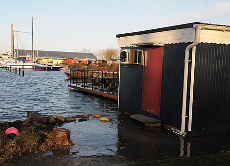 Runt restaurang Idas i Lundåkrahamnen var det idag mer vatten än normalt.