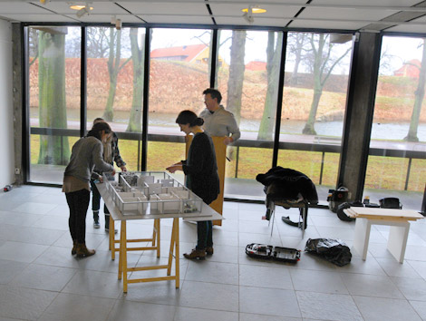 En av grupperna håller på att bygga upp en modell av konsthallen
