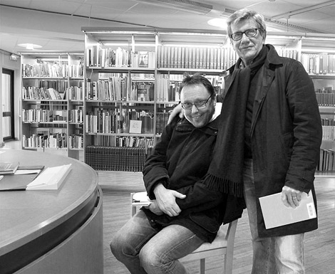 ”Överallt i Landskrona” springer vi på gamla bekanta. I samband med fotoutställningen träffade vi på alltid lika trevliga Lennart Landin. Bilden döptes snabbt till ”Elev och lärare – 40 år senare”.