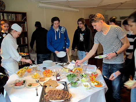 – Efter att de tre grupperna ätit sina frukostar går vi tillbaka till skolan. Väl där väntar en filmvisning om glutentolerans, ett riktigt sömnpiller, säger Pia Sönnichsen, lärare på gymnasieskolan.