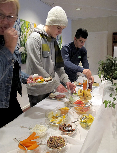 Det var på Hotel Öresund som projektets första del ägde rum och första- och andraårseleverna lät sig väl smaka av de olika frukostalternativen. En som såg ut att trivas var Fritz Thörn som går i tvåan. Han försåg sig väl med såväl bacon och ägg som pannkakor, wienerbröd och croissanter.