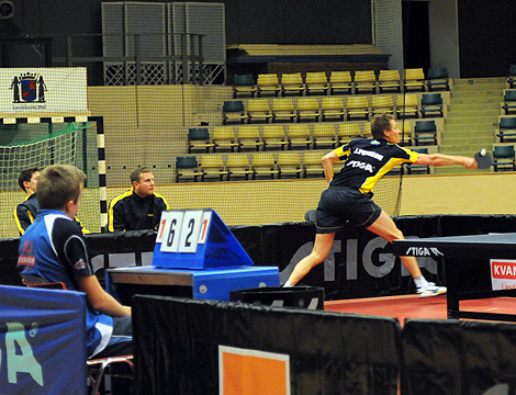 Kvällens svettigaste smashräddning svarade dock veteranen Jörgen Persson för när han efter ett par tillbakabollningar, sträckte ut och kombinerade tur med skicklighet, när bollen efter en hög lyra landar på bordskanten otagbar för engelsmannen.