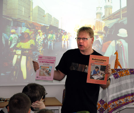 Andreas Hallman berättade om barns vardag i Benin för klass 4G på Seminarieskolan.