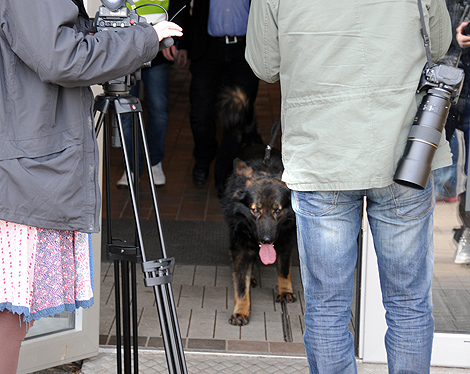 Efter cirka 20 minuter kom polisen ut till den väntande pressen med Yoda i spetsen.