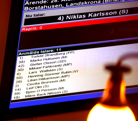 Torkild Strandberg (FP) följde och kommunens och invånarnas bidragsberoende fördes in i debatten. På en overhead beskrevs Landskrona problem i form av tappad skattekraft, beroendet av statliga bidrag samt sociala obalanser.