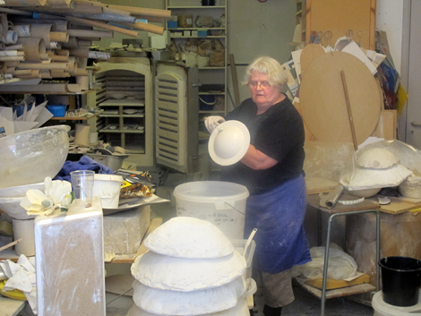 Lena Olsson lätt besökarna titta på medan hon glaserade verk som ska visas under kommande trädgårsrunda.
