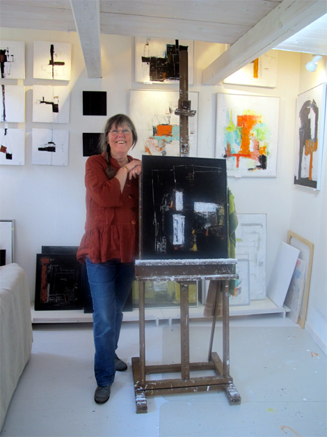 – Eftersom jag kom igång så pass sent med måleriet så måste jag vara desto mer produktiv nu. Jag har inget lager att ösa ur, säger hon vars akrylmålningar, vissa med sand i, tycks ligga helt rätt i tiden.