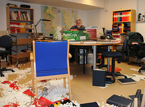 – Vi får väl försöka att få ordning här på något vis. Frågan är bara var man ska börja, avslutar arkivarien och blickar ut över de förstörda lokalerna.