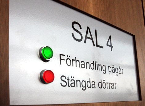 I Helsingborgs tingsrätts säkerhetssal hölls förhandlingarna bakom stängda dörrar.