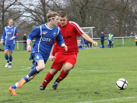 Simon Tollesson rycker ifrån en Stehagspelare. Foto: Leif Hammarström