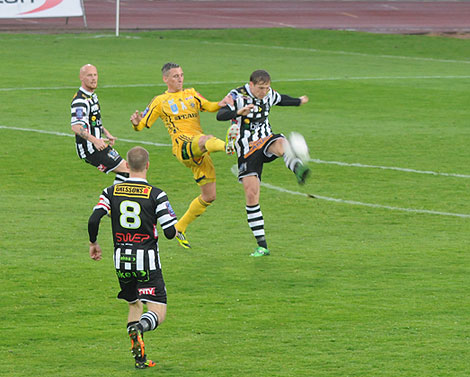 Efter en halvtimmes spel trodde nog alla på idrottsplatsen att BoIS skulle ta ledningen. Efter ett vackert väggspel hamnade bollen hos Fredrik Olsson som ur snäv vinkel sköt och halvmetern från mållinjen kom Åström glidande, nådde bollen, men i klass med en best-of-bloopers tar bollen en bana upp i ribbans överkant och ut.