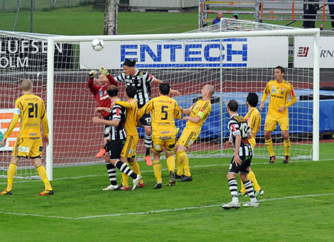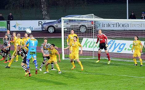 Ivo Vazgec var uppe och nickade på en hörna men fick se bollen gå utanför.