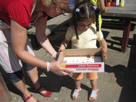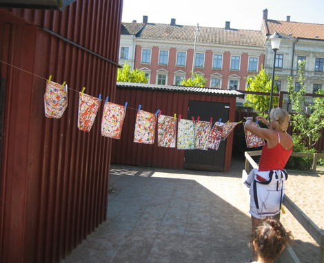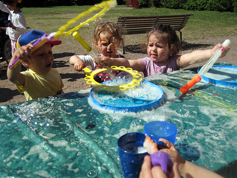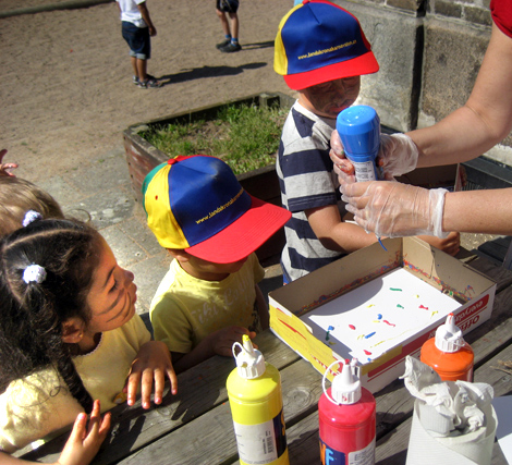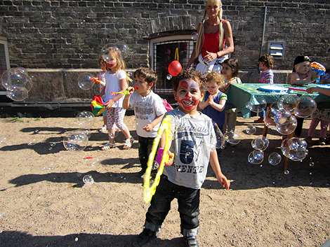 – Vi målade med olika tekniker: ett av dem var att rulla en kula med färg på, en annan var att blåsa ut klickad färg på papper med hjälp av ett sugrör, en annan aktivitet var att med hjälp av olika redskap göra såpbubblor i olika storlekar och olika mängd. Alla barn som ville blev ansiktsmålade och valde motivet själv innan vi samlades och sjöng sommarsånger tillsammans och åt glass.