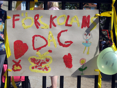 – Vi dekorerade vår gård med ballonger och plastband i rött och gult som är Lundegårdens färger, meddelar förskollärare Annette Welin och berättar om flera uppskattade aktiviteter på gården.