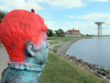 Bronsstatyn över Nobels litteraturpristagare står på den plats Selma Lagerlöf kanske uppskattade mest i Landskrona, den vackra strandpromenaden utmed Öresundskusten.