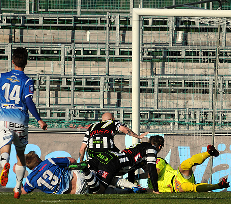 Det märktes tydligt vilka som var i störst behov av poängen och vilka som hade råd att ha is i magen. Trelleborg som är fast förankrade på kvalplats nedåt försökte förtvivlat att anfalla utan att egentligen skapa några riktigt heta chanser medan BoIS lurpassade. Och det var just ett snabbt anfall som låg bakom BoIS mål. Efter ett TFF-avslut satte Ivo Vazgec igång spelet med en snabb utspark. Bollen hamnade hos Linus Olsson som missade men Luka Mijaljevic var med på noterna och slog in målvaktsreturen.
