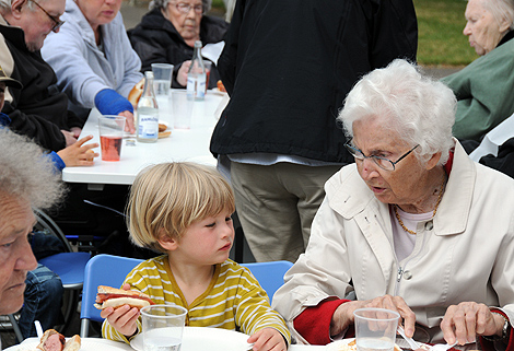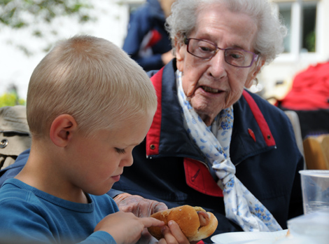 – Barnen har kommit hit och tillsammans med de äldre gjort gemensamma saker. Man har ritat, spelat spel och intervjuat varandra för att nämna några av sakerna, säger enhetschefen samtidigt som det kallas till korvgrillning.