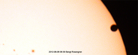Landskrona har som bekant stolta traditioner när det gäller astronomi, från Tycho Brahe och framåt. Redan igår kunde vi publicera Peter Koppes fina bilder av Venuspassagen och något senare under dagen kom det även bilder på samma fenomen från Bengt Rosengren.