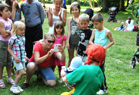 I runda svängar 150 barn med föräldrar samlades under onsdagen i Karlslund för att fira midsommar på Parkleken 63:an. Göran ”Sander” Andersson från Sander och Gander spelade, sjöng och dansade kring midsommarstången med barnen.