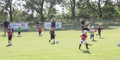 20-talet barn – ibland är det fler – träffas en kväll varje vecka, skjuter, passar och har roligt med bollen och som avslutning får man äta glass.