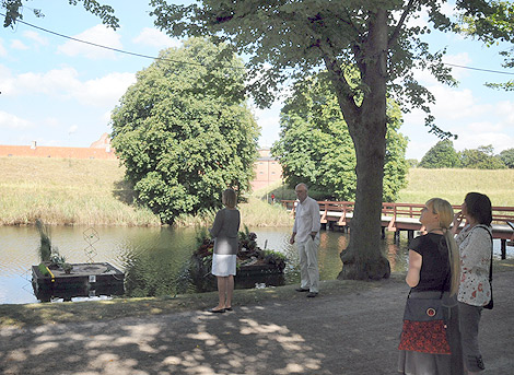 De som flanerar i den lummiga allén längst med vallgraven kan inte undvika att det är trädgårdsgille på gång. Det är de traditionella trädgårdsflottarna som byggs under dagarna och transporteras till sin plats i höjd med konsthallen.