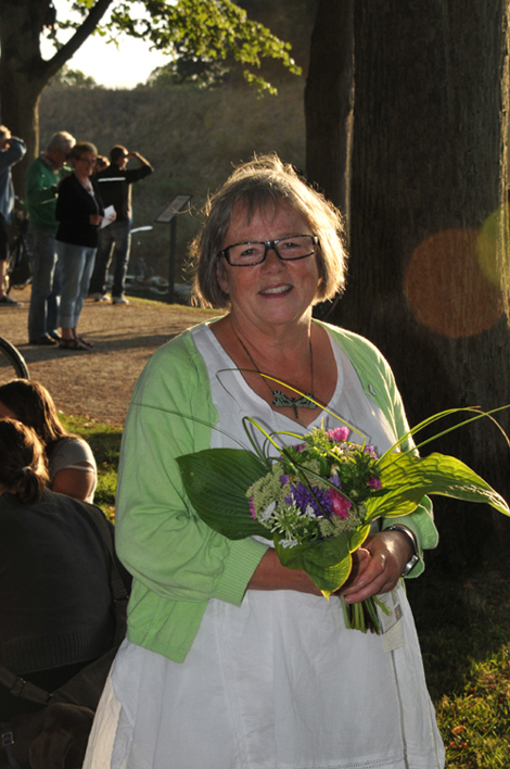 Gunnel Carlson strax efter att hon fått motta Kungliga patriotiska Sällskapets medalj för förtjänster om trädgårdsodling. Foto: Lennart Halldin.