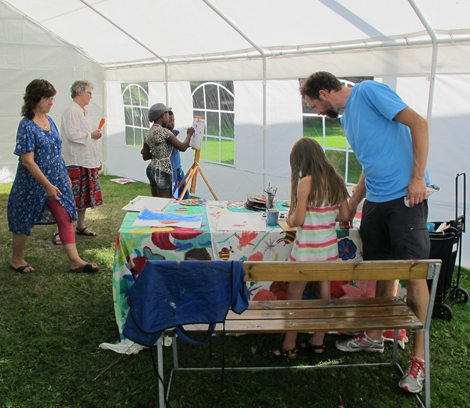 Kulturpedagog Birgitta Liljekvist hjälpte alla som ville måla med ”växtfärg”.