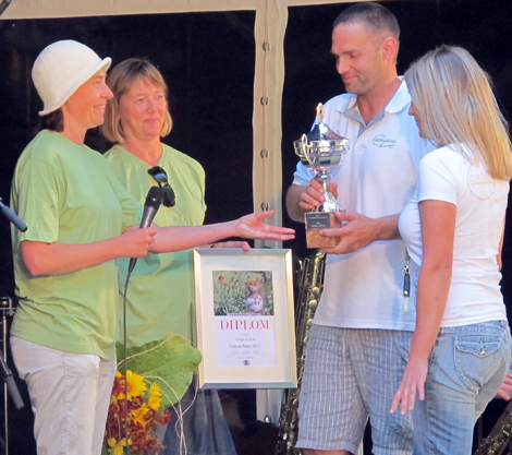 Emeli Zeilon och Annelie Oxenstierna från kulturförvaltningen gratulerade vinnarna av årets flottaste flotte, Mia Eskilsson och Kristian Nylander.