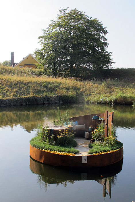 – Vi lyckades ladda om till i år, sa en glädjestrålande Mia Eskilsson som designat den runda flotten Paus som bland gyllenröllika, solhatt, tofsäxing, prynadshirs och blåtåtel även fått till ett mysigt spa med dusch, vilobänk och en liten badtunna.
