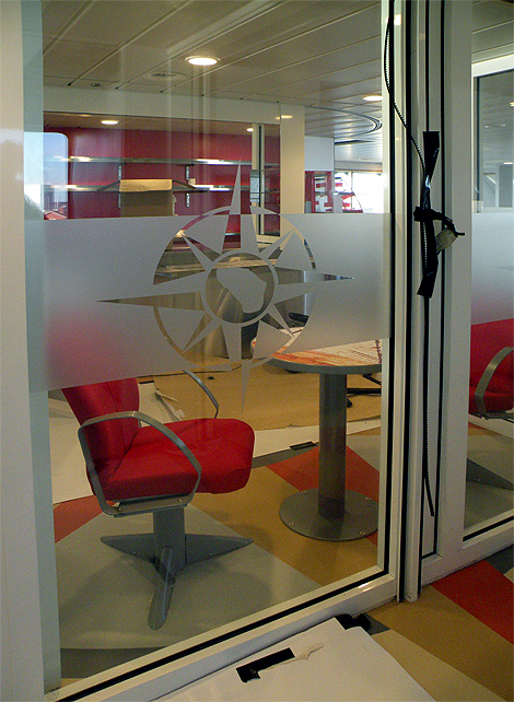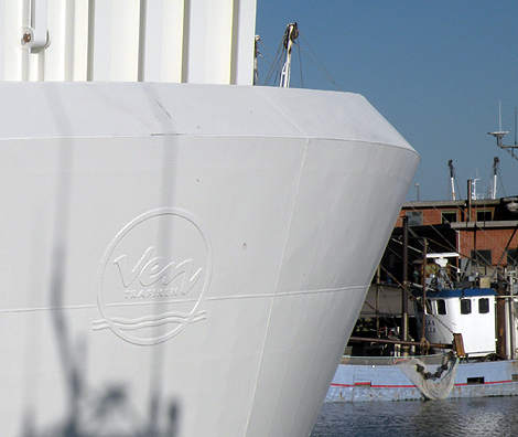 Det finns fortfarande lite finlir kvar att göra på M/S Uraniborg. Bland annat ska Ventrafikens nya logotyp målas.