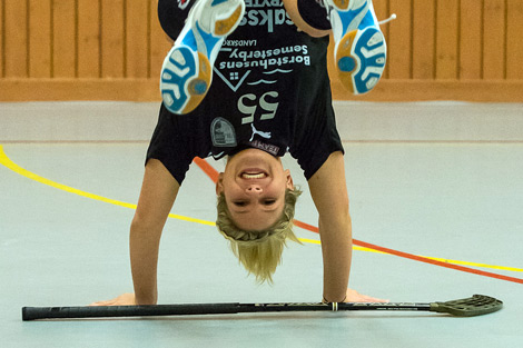 – Jag fick med mig en rätt häftig bild i bagaget när målvakten, Sara Johnsson prickar kameran med en innebandyboll. Ni ser ju själv hur hon kände för det, säger eldsjälen Ulf Bjarke som många gånger glatt Landskrona Direkts läsare med sina (ursäkta uttrycket) pricksäkra bilder.