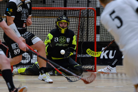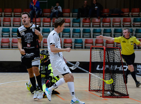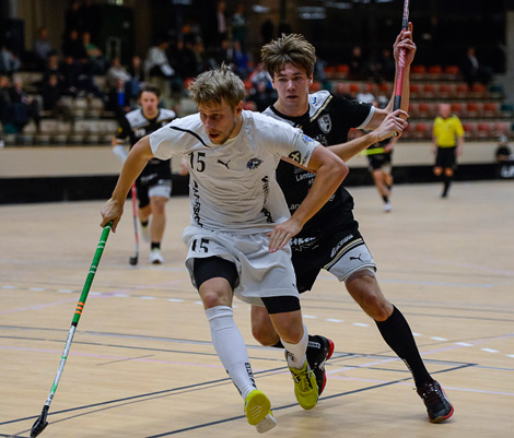 Det är hårt, det är tufft, det är innebandy i Idrottshallen i Landskrona. Foto:Ulf Bjarke.