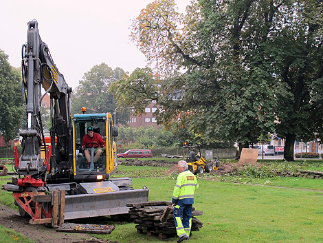 Under kommande vecka påbörjas markentreprenaden i och kring Gamla kyrkans grund i Stadsparken.