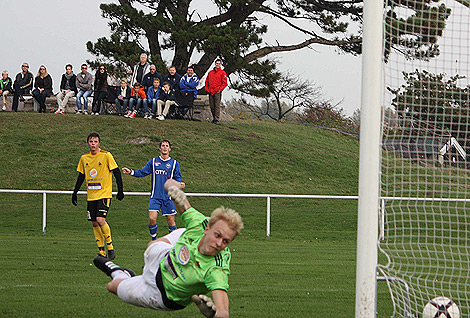 Wormomål på väg. Bunkeflos målvakt Nicklas Hammer kastar sig förgäves efter Eric Noréns nick som betydde 3-0. Foto: Leif Hammarström