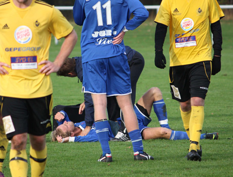 Det var många gånger hårda tag på Exan. Här har Jonas Hansson behandlats omilt. Foto: Leif Hammarström