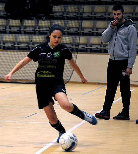 Mirella gör som som stjärnorna i de stora ligorna. Fixar till håret strax innan avspark.