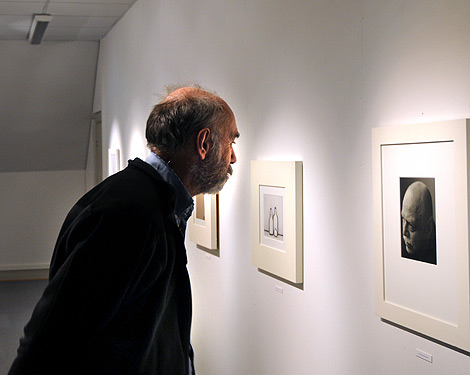 Fotograf Gerry Johansson betraktar Dawids porträtt av den store fotoikonen Christer Strömholm.