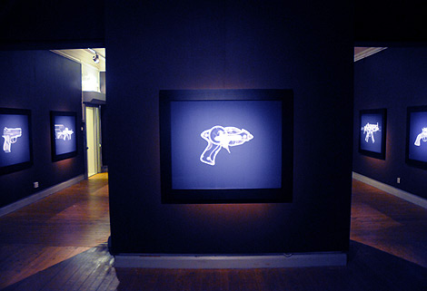 Blueprints – Dawids helt nya stora bildsvit av leksaksvapen framtagen speciellet för rummen den hänger i på Landskrona Museum.