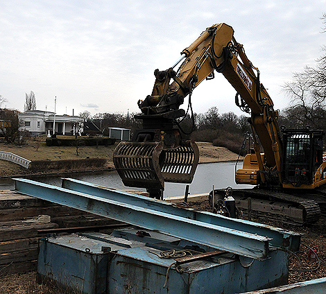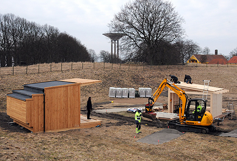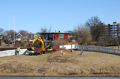 Som vi tidigare berättat kommer Statens fastighetsverk att anlägga en ny bro över vallgraven. På platsen, alldeles intill jubileumskolonin från 1913 kommer två nya stugor att resas. På bilden förbereder man för detta.