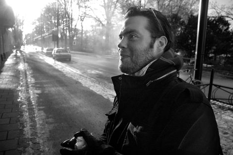 En novembereftermiddag träffade vi på Csaba Bene Perlenberg vid Eriksgatan på väg till redaktionen efter ett reportage. Foto: Håkan Karlsson