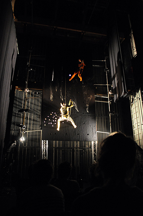 På en specialtillverkad klättervägg bjöds det på en luftburen vertikal dansföreställning där två dansande ”insekter” i en flirt med tyngdkraften och varandra, dansades till den flippigt specialkomponerade musiken och där enkla ljus- och rökeffekter bidrog till att utforska det omöjliga.