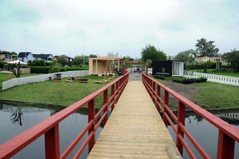De moderna kolonistugorna ritades och gjordes som modeller i skala 1/10 av arkitektstuderande för två år sedan. Nu har dessa låtits uppföras av främst lokala byggfirmor samt inretts av likaledes lokala inredningsbutiker. Runt stugorna har trädgårdsinstallationer byggts upp på olika teman av trädgårdssällskap och firmor.
