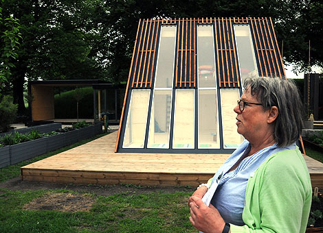 – Håll med om att det blir fint?, sken hon och visade runt bland de häftigt designade kolonistugorna där odlandet trots allt kommer att stå i fokus.