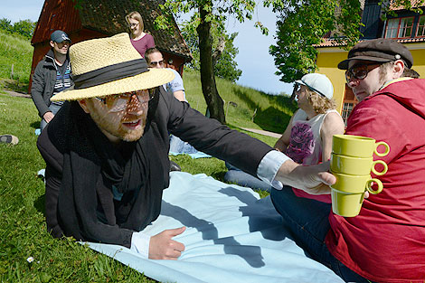 I lummigt gröna och sköna bastion Landskrona var det dukat till fika och en efter en presenterades kompositörerna, den professionella delen av skådespelarensemblen och musikerna.